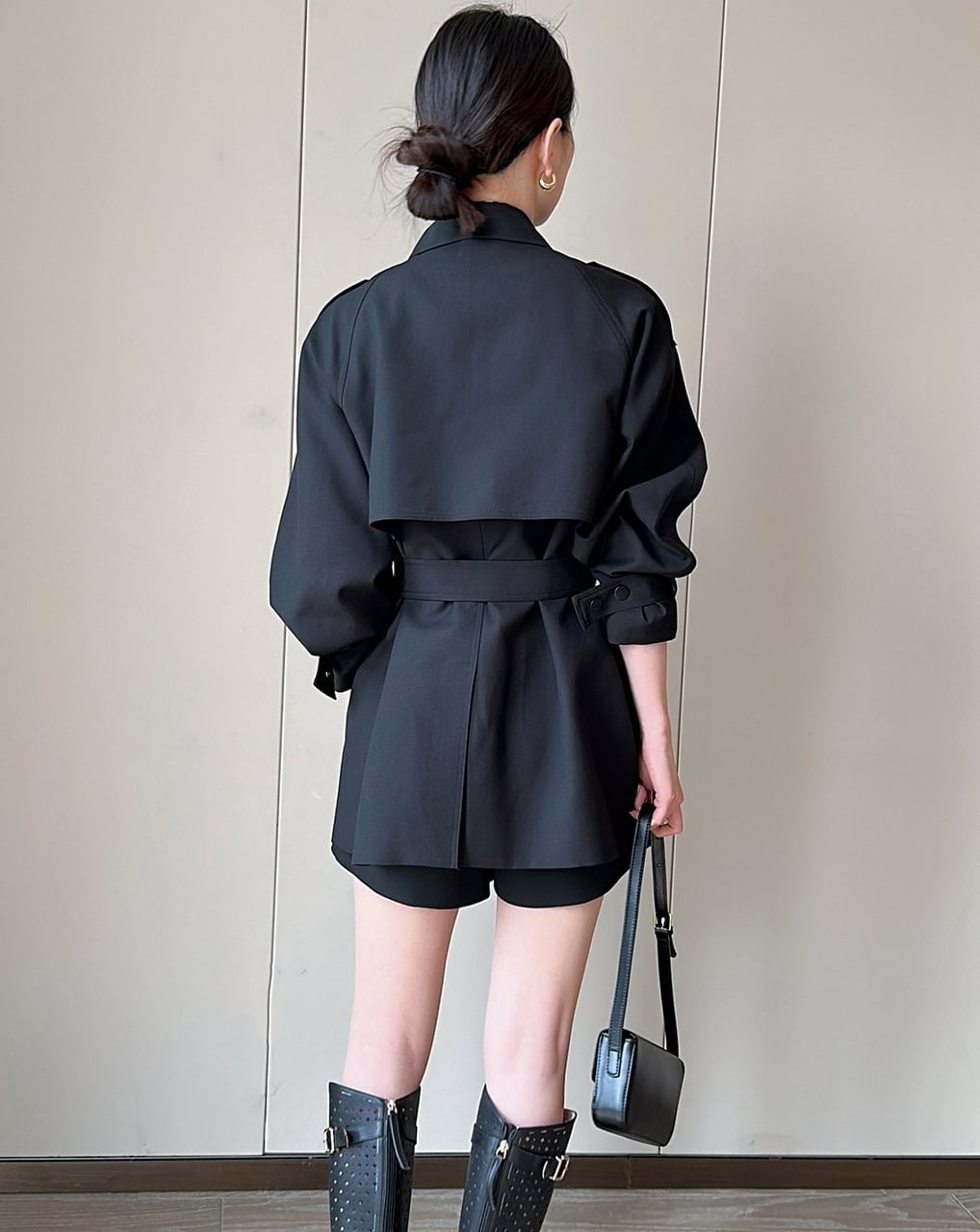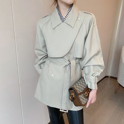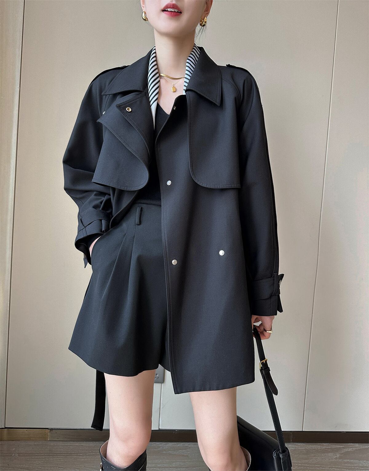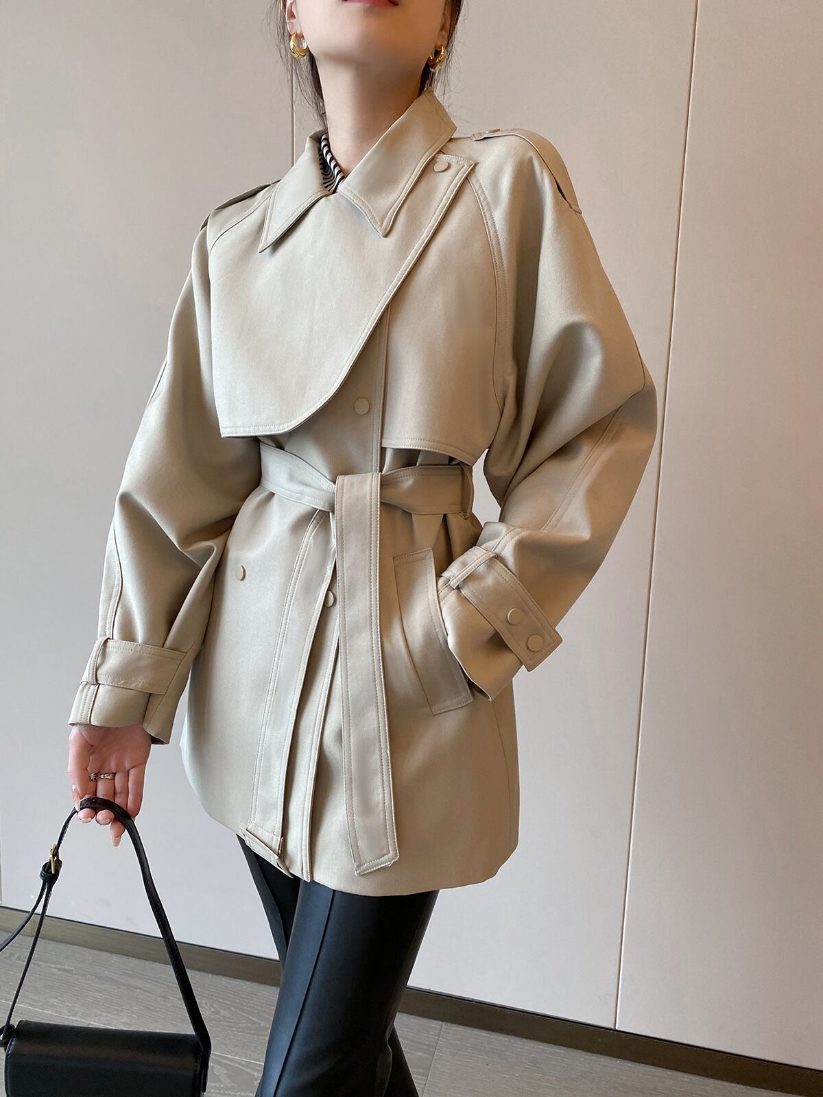 トレンチコートの魅力を存分に引き出す、シンプルで上品なデザインが特徴のアウターです。
