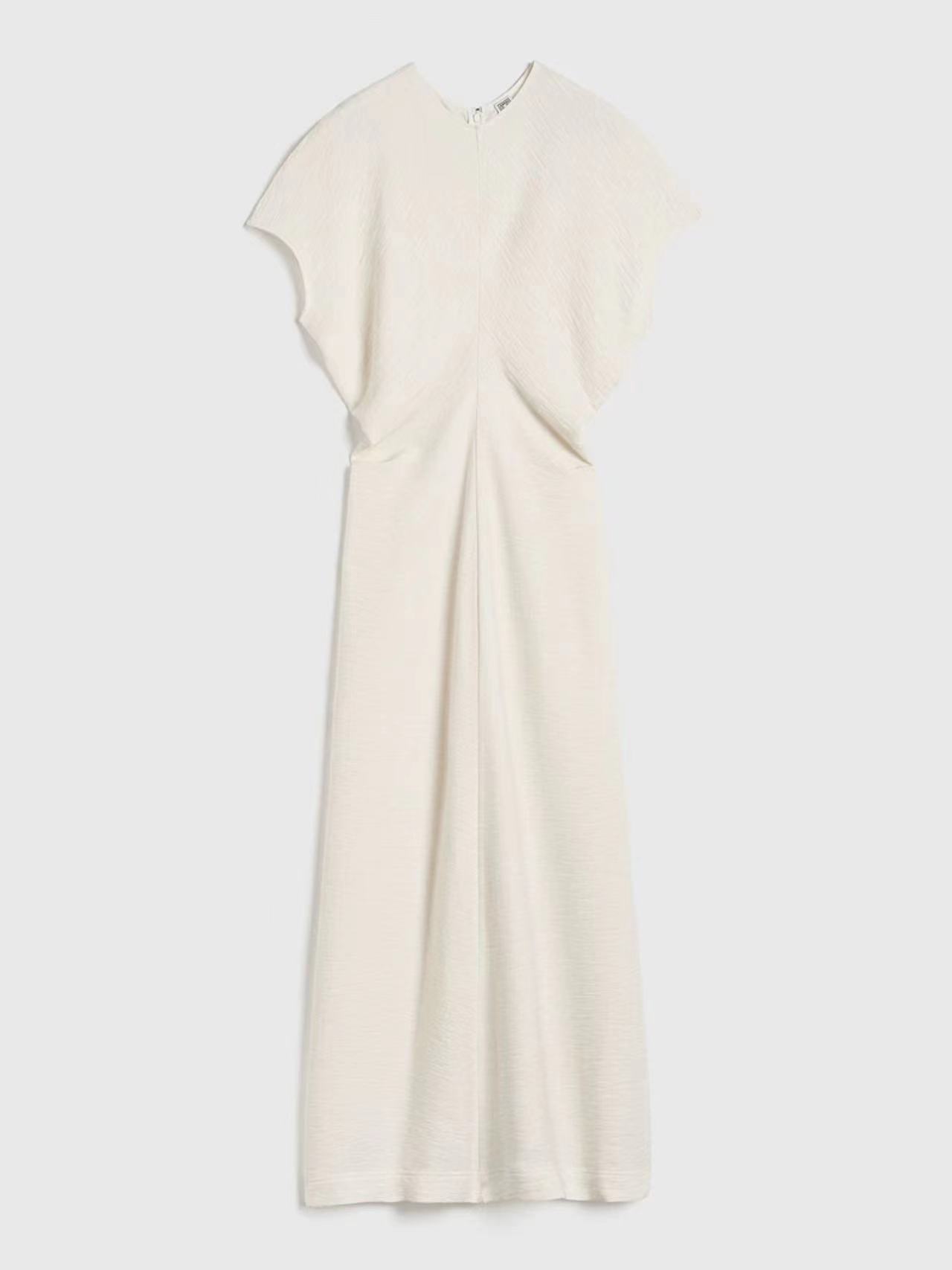 クルーネックとウエストマークデザインがポイントで、大人可愛いエレガントな雰囲気を演出します。