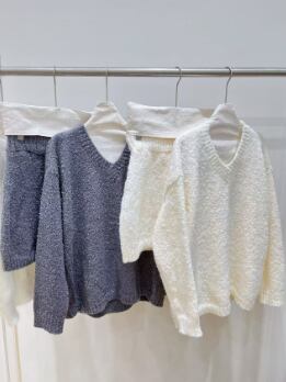 長袖のVネックデザインが程よいセクシーさを演出し、大人可愛いスタイルを実現します。