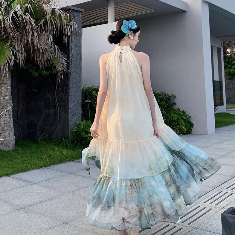 アメリカンスリーブ レディース ワンピース ドレス 膝下 ミモレ ロング 袖なし スタンドカラー フレア Aライン 切り替え オーバーサイズ ティアード フェミニン 異国風 ボタン 配色 かわいい 大人可愛い きれいめ シンプル カジュアル 上品 おしゃれ アジアン エキゾチック こなれ感 ルーズ 個性的 エレガント 存在感 抜け感 ナチュラル 無地 夏 ママ デート お出かけ イベント リゾート 旅行 海 プール レストラン ビーチ 女子会 休日 バカンス 体型カバー インスタ映え S M L XL