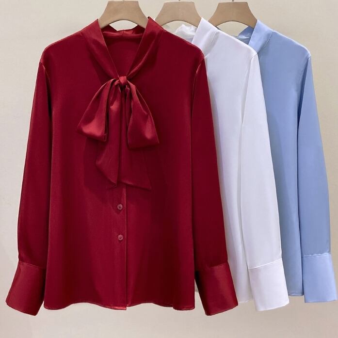 トップス シャツ シルクシャツ 長袖 Vネック リボンタイ 前開き ボタン ミディアム丈 かわいい 可愛い 大人可愛い きれいめ シンプル 上品 おしゃれ かっこいい カジュアル こなれ感 個性的 主役級 存在感 抜け感 オールシーズン ベーシック ナチュラル エレガント フォーマル 女性用 レディース ママ OL 通勤 オフィス 学生 通学 デート お出かけ お泊まり 女子会 旅行 休日 カフェ ショッピング コンパ イベント普段使い デイリー 着回し 重ね着 4XL 5XL 6XL 7XL 8XL