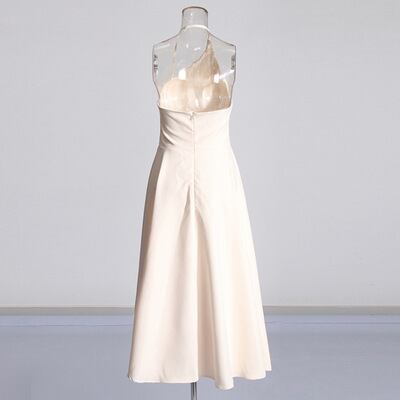 ワンピース ミモレ丈スカート ノースリーブワンピース 背中開き バックシャン プリーツ フレアスカート かわいい 大人可愛い きれいめ シンプル 上品 おしゃれ レトロ かっこいい カジュアル こなれ感 個性的 主役級 存在感 抜け感 ベーシック ナチュラル エレガント キュート 無地 女性用 レディース ママ OL 通勤 学生 通学 デート お出かけ お泊まり 女子会 旅行 休日 カフェ ショッピング コンパ 普段使い デイリー イベント パーティー 二次会 ディナー ホテル 着回し 重ね着 脚長