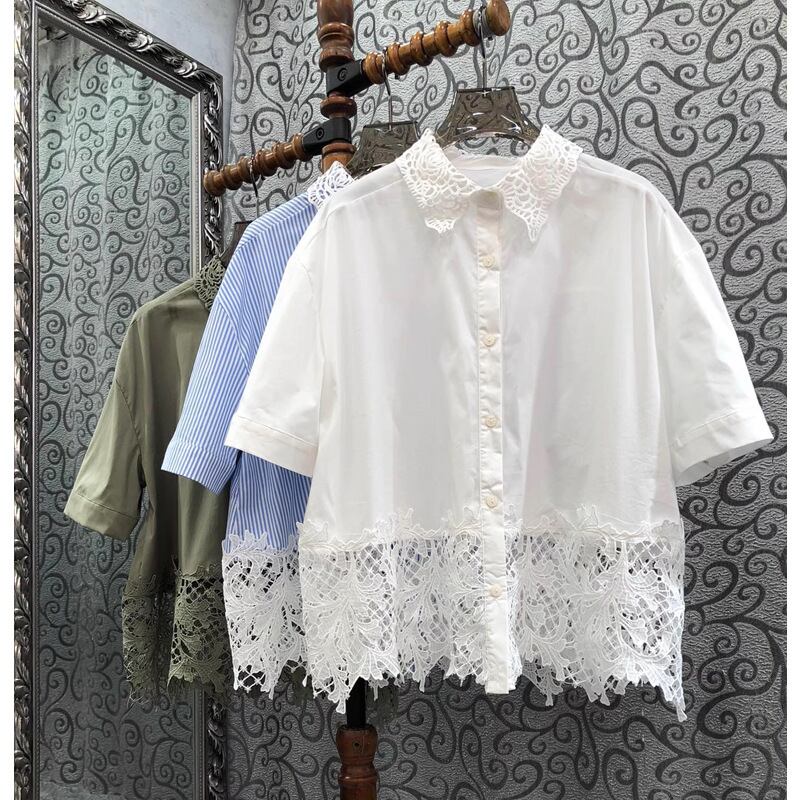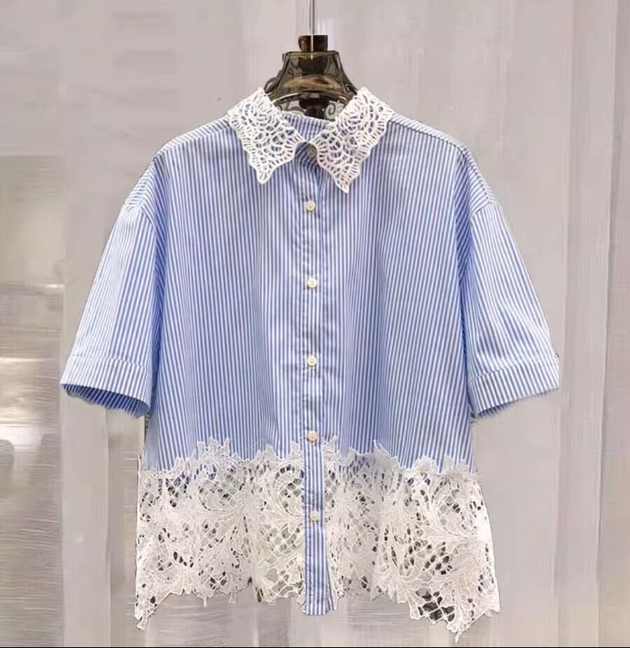 レディース トップス シャツ ブラウス ミディアム 半袖 襟付き 角襟 切り替え フェミニン レース 前開き 透け感 ボタン 異素材ミックス かわいい 大人可愛い きれいめ シンプル カジュアル 上品 おしゃれ こなれ感 ラフ 存在感 抜け感 ナチュラル 無地 ストライプ 春 夏 ママ 学生 学校 通学 デート お出かけ イベント リゾート 旅行 レストラン 公園 女子会 休日 バカンス ショッピング コンパ カフェ 普段使い 着回し 清楚 ゆったり フリーサイズ ホワイト ブラウン ベージュ ブルー
