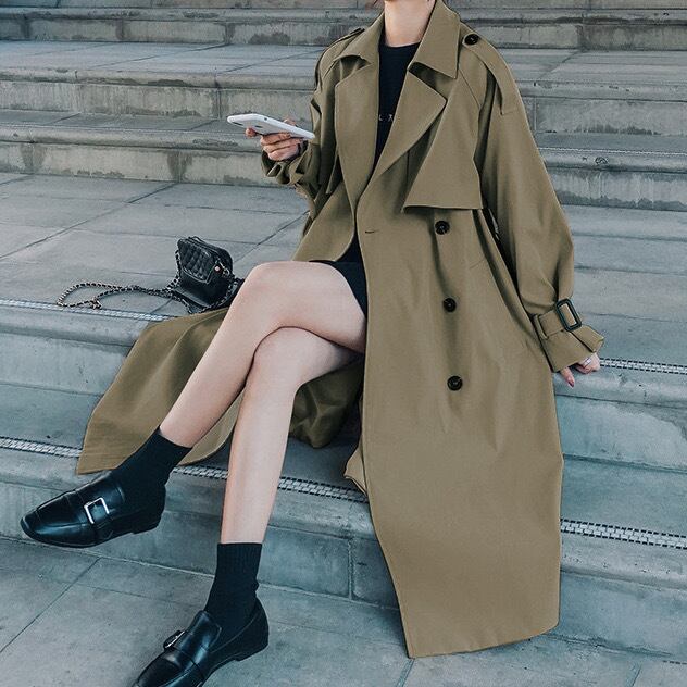 春秋にぴったりな定番アウターのロングトレンチコート。