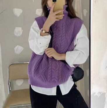 レディース トップス ニット ベスト 袖なし ハイネック ワイド もこもこ ふわふわ ふっくら 編み込み 異国風 中厚手 カシミア かわいい 大人可愛い きれいめ シンプル カジュアル 上品 おしゃれ かっこいい ラフ 存在感 都会的 カレッジ風 ナチュラル 無地 秋 冬 誕生日 授業参観 ママ マタニティ オフィス OL 学生 デート お出かけ 旅行 女子会 ライブ 合コン コンパ カフェ 重ね着 体型カバー 着回し ゆったり フリーサイズ 黒 紫 グレー オフホワイト カーキ ブルー