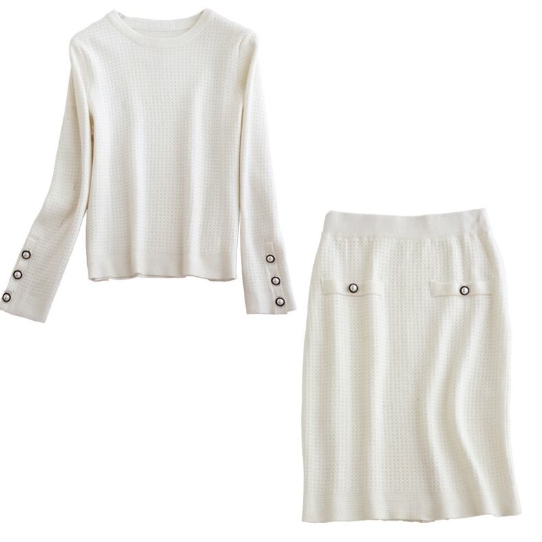 2点セット セットアップ 長袖 ラウンドネック プルオーバー ミディアム丈 ミディアム丈スカート ハイウエスト ニットかわいい 大人可愛い きれいめ シンプル 上品 おしゃれ レトロ かっこいい カジュアル こなれ感 個性的 主役級 存在感 抜け感 ベーシック ナチュラル クール エレガント 無地 女性用 レディース ママ OL 通勤 オフィス 学生 通学 デート お出かけ お泊まり 女子会 旅行 休日 カフェ ショッピング コンパ 普段使い デイリー イベント 着回し 重ね着 脚長 S M L XL