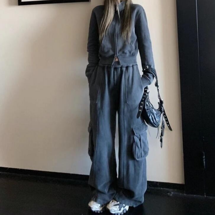 2点セット セットアップ 長袖 ハイネック 前開き ファスナー ポケット ショート丈 ロングパンツ カジュアルパンツ マルチポケット かわいい 大人可愛い きれいめ シンプル 上品 おしゃれ かっこいい カジュアル こなれ感 個性的 主役級 存在感 抜け感 秋 冬 ベーシック ナチュラル クール メンズライク スポーティー 無地 女性用 レディース ママ OL 通勤 学生 通学 デート お出かけ お泊まり 女子会 旅行 休日 カフェ ショッピング 普段使い デイリー 着回し 重ね着 脚長 S M L