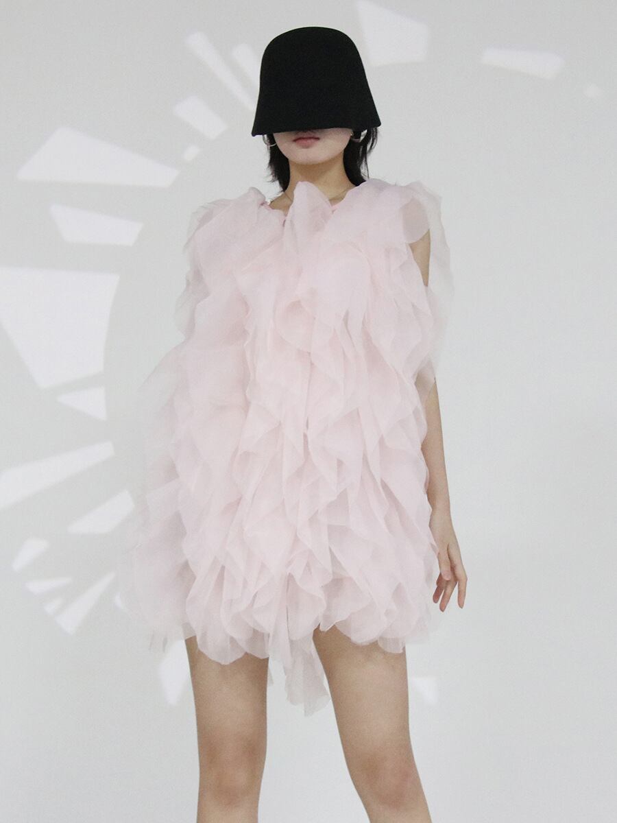 レディース ワンピース ドレス ミニ 膝上 袖なし ノースリーブ ラウンドネック タイト スリム ストレート Iライン フェミニン フリル リボン バックリボン ふわふわ 透け感 シースルー かわいい 大人可愛い おしゃれ ガーリー 個性的 エレガント 存在感 ラブリー キュート 無地 夏 ママ パーティー イベント 発表会 コンサート コーデ S M L XL ベージュ ピンク レッド