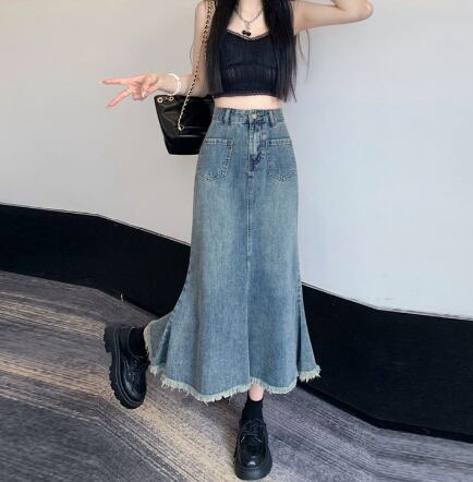 レディース スカート デニム デニムスカート ロングスカート 膝下 ミモレ ロング ワイド フレア Aライン デニム ブルーデニム コットン かわいい シンプル おしゃれ レトロ ガーリー キュート 学生風 ナチュラル 無地 春 夏 学生 デート お出かけ キャンプ イベント リゾート 旅行 海 休日 ショッピング お花見 カフェ 体型カバー 美脚 普段使い モテ 清楚 S M L XL 2XL レトロブルー
