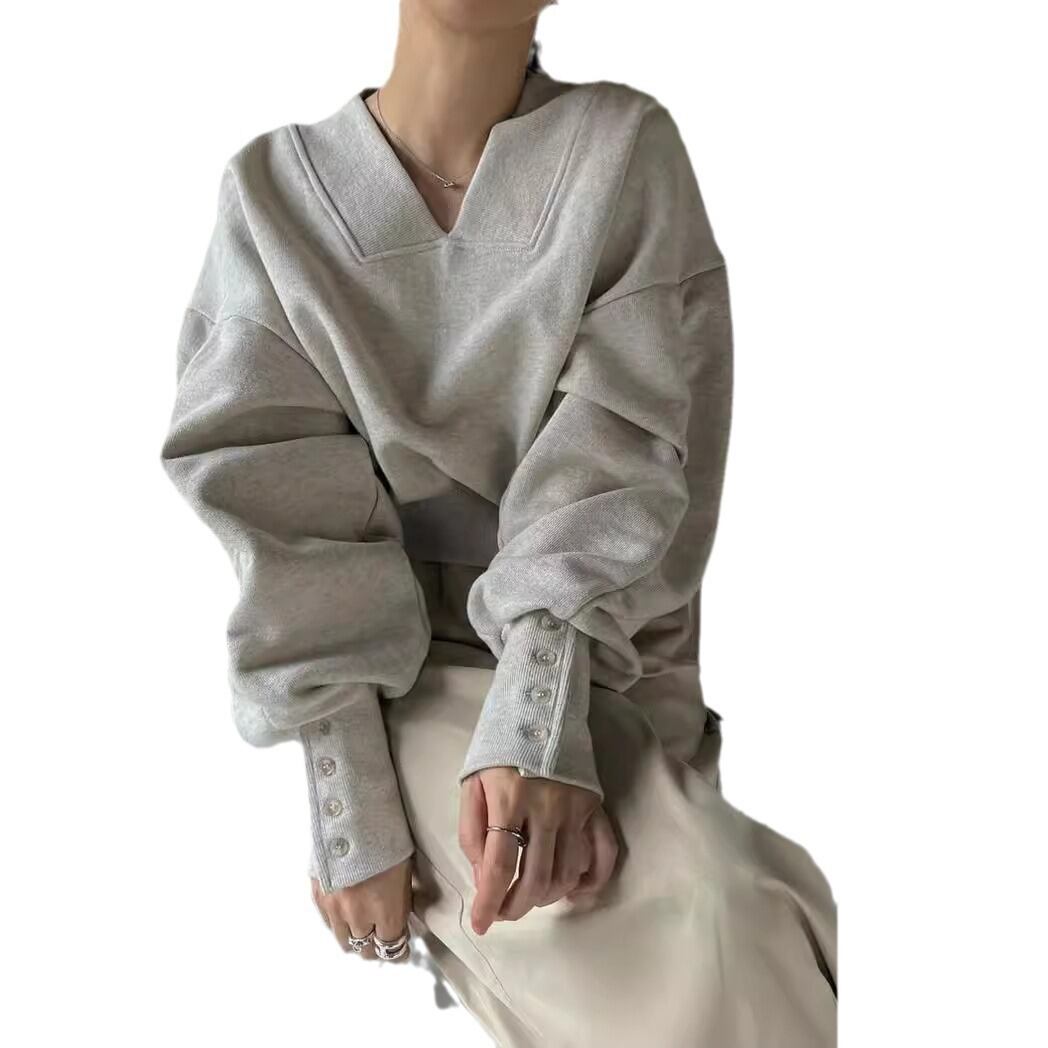 レディース トップス トレーナー 長袖 Vネック ボタン 大人可愛い きれいめ おしゃれ かっこいい ラフ ガーリー クール フォーマル 都会的 ロマンティック ナチュラル 無地 春 秋 通勤 デート お出かけ お泊まり イベント 旅行 レストラン 公園 女子会 休日 ホテル ショッピング コンサート ライブ カフェ 韓国 コーデ 楽ちん プレゼント 普段使い 着回し モテ 清楚 インスタ映え S M L グレー
