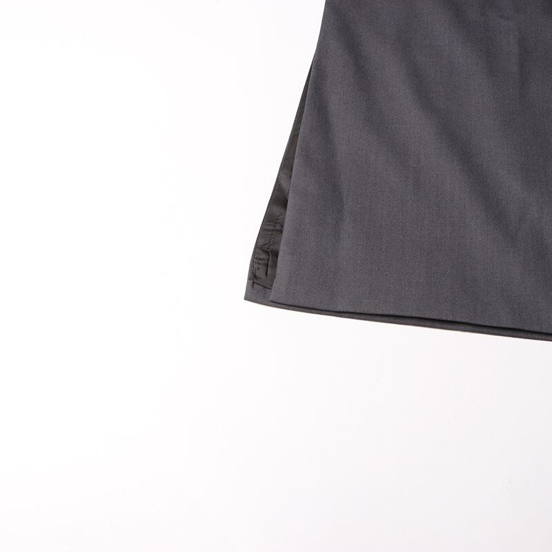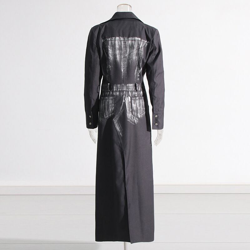 シャープなシルエットが魅力の、襟なしVネックロングコート。細身のストレートラインとバックスリットが、美脚効果を引き立てつつ動きやすさも兼ね備えています。モノトーンのプリントがシンプルな中にも個性を添え、クールで大人可愛い印象に。羽織るだけでスタイルが決まり、通勤や通学、休日のお出かけにも活躍。春夏の軽やかな着回しアイテムとしておすすめです。