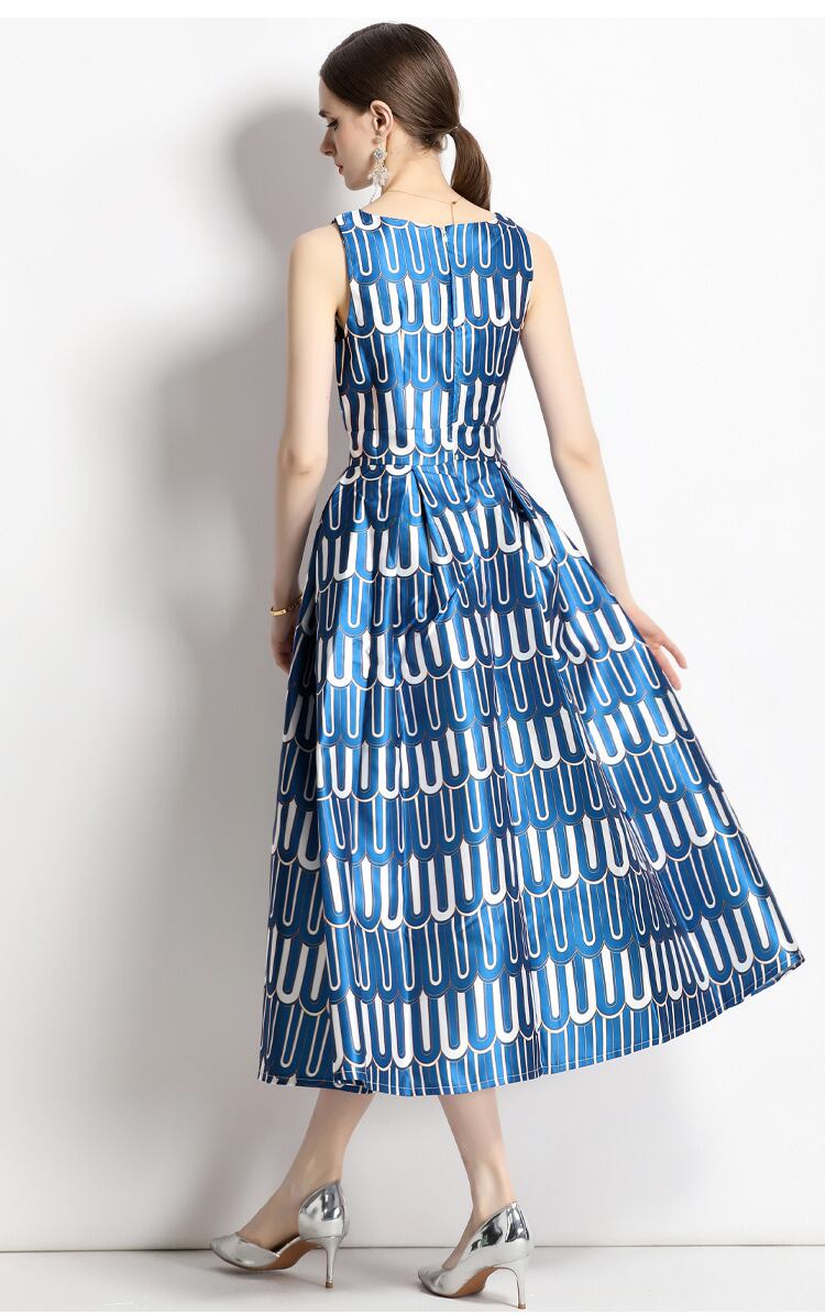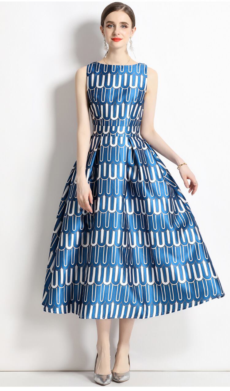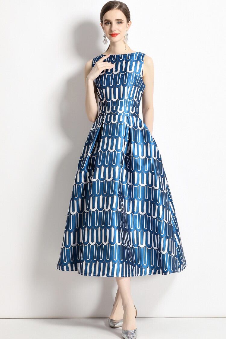 レディース ワンピース ドレス 膝下 ミモレ 袖なし ノースリーブ ラウンドネック 襟なし スリム Aライン 切り替え タック ハイウエスト 大人可愛い きれいめ 上品 おしゃれ レトロ ガーリー エレガント 存在感 プリント 総柄 夏 ママ デート お出かけ パーティー イベント リゾート 旅行 レストラン 女子会 休日 バカンス ホテル ショッピング 発表会 コンパ コーデ S M L XL 2XL 大きいサイズ 大人カラー