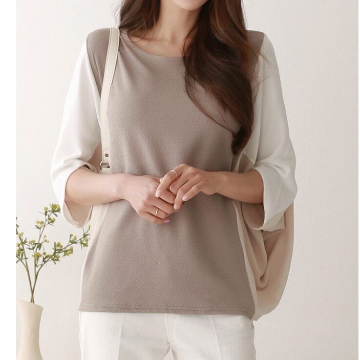 上品でおしゃれな印象を与える「カットソー」は、5分袖のドルマンスリーブデザインが特徴です。