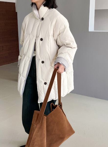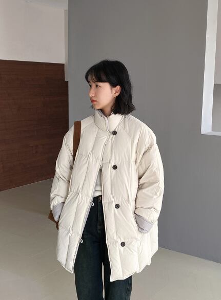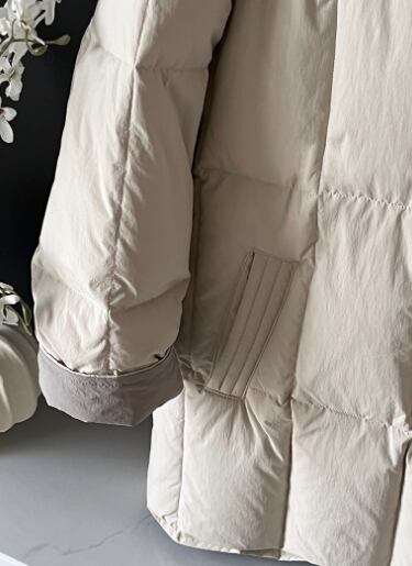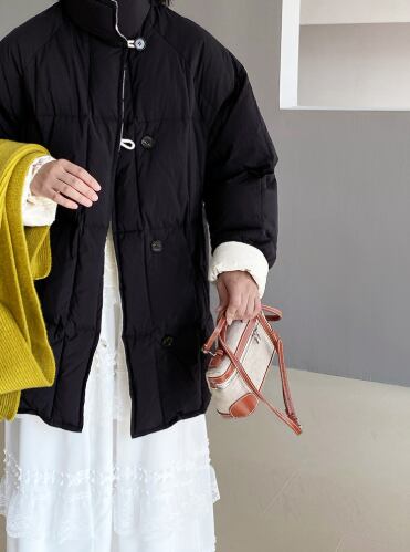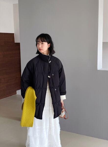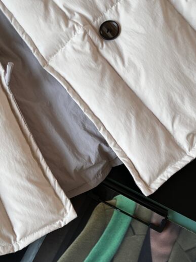 シンプルで上品なデザインのこのダウンジャケットは、長袖のボタンダウンスタイルが特徴で、普段使いから特別なお出かけまで幅広いシーンで活躍してくれます。