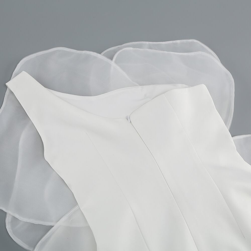 華やかなシーンに映えるワンショルダードレスです。膝上丈のミニシルエットにIラインの細身デザインを採用し、すっきりとしたスタイルアップ効果を叶えます。背面ファスナー付きで着脱もスムーズ、動きやすさと美しさを両立しています。