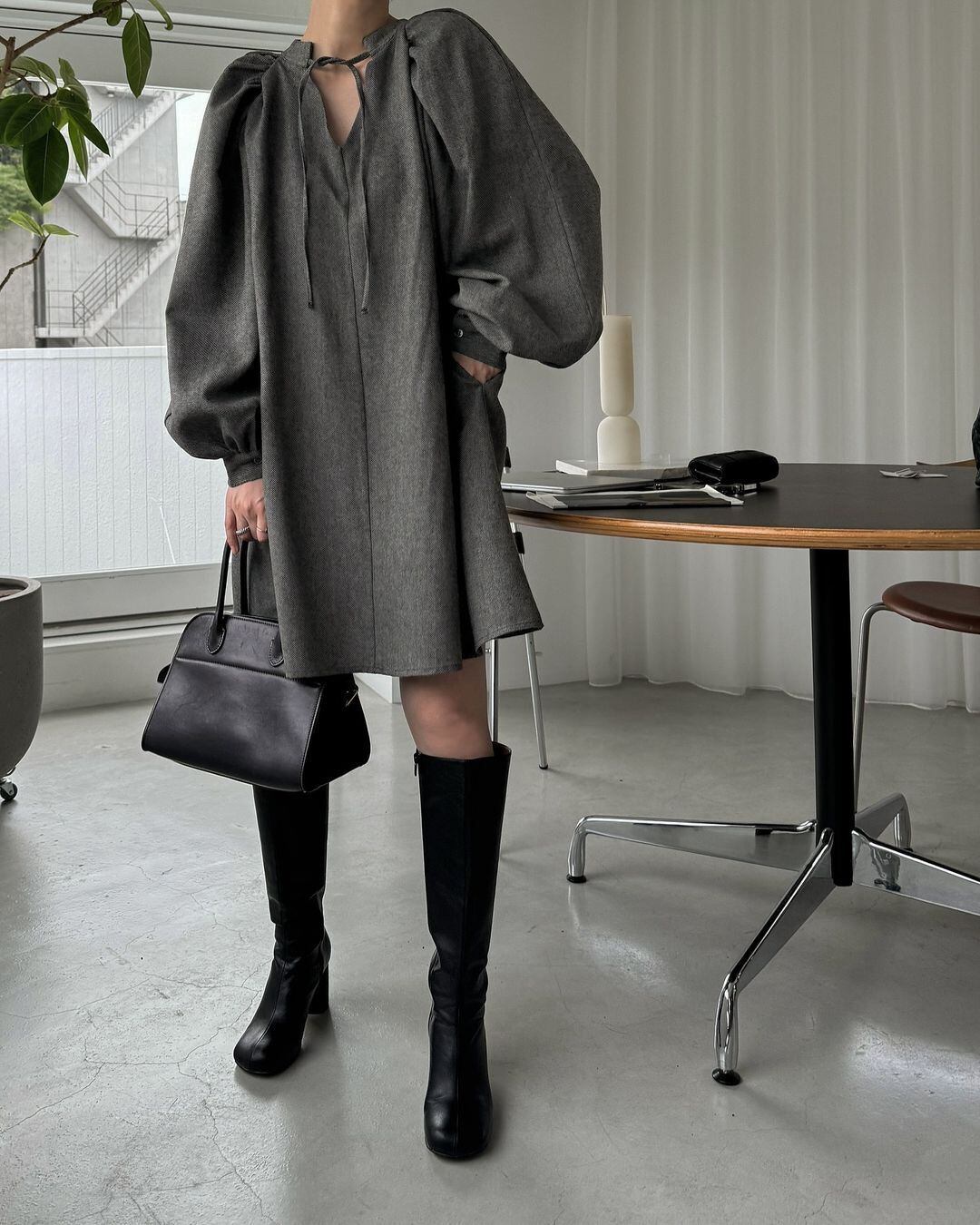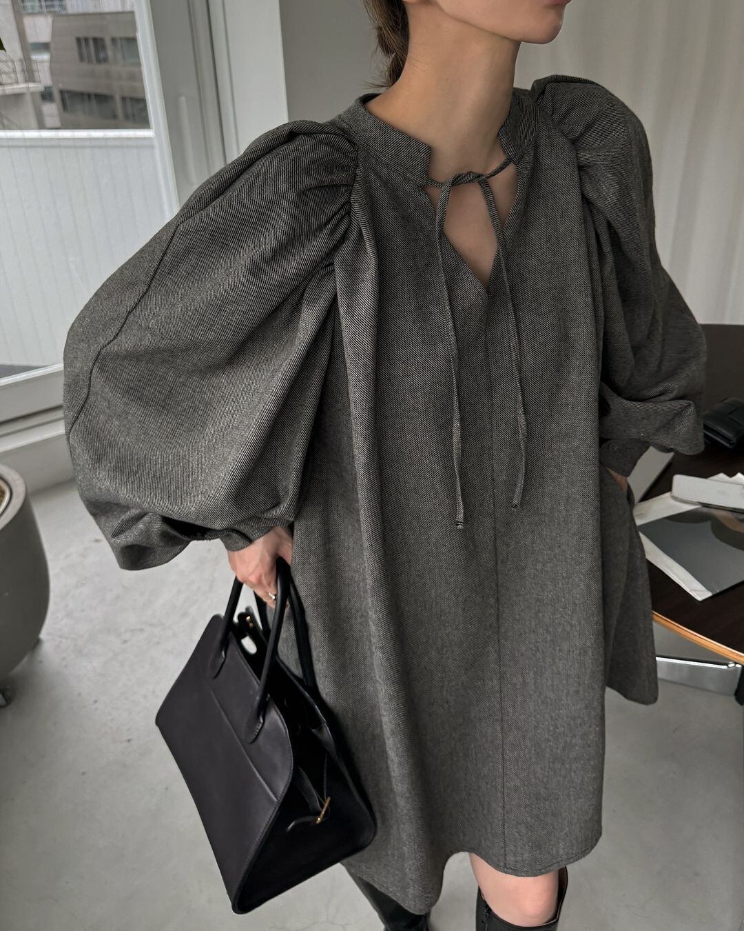 ふんわりと揺れるフレアシルエットが魅力の、大人可愛いワンピース。ボリュームのあるパフスリーブとVネックが、顔まわりをすっきり見せつつ、程よい甘さをプラスします。リボンディテールがさりげなくフェミニンさを演出。