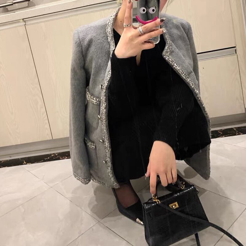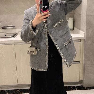アウター コート ノーカラーコート 長袖 ラウンドネック 前開き ミディアム丈 マルチポケット スパンコール かわいい 可愛い 大人可愛い きれいめ シンプル 上品 おしゃれ レトロ ラフ かっこいい カジュアル ルーズ こなれ感 個性的 主役級 存在感 抜け感 秋 冬 ベーシック ナチュラル クール エレガント 無地 女性用 レディース OL 通勤 学生 通学 デート お出かけ お泊まり 女子会 旅行 休日 カフェ ショッピング コンパ 普段使い イベント 着回し 重ね着 S M L トレンド モテ