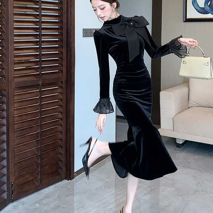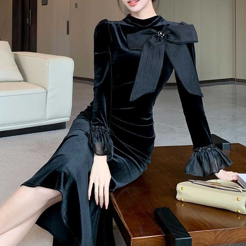 ワンピース ミディアム丈ワンピース 長袖 ハイネック マーメードスカート リボン ビジュー シースルー タイト ベルベット かわいい 大人可愛い きれいめ シンプル 上品 おしゃれ レトロ かっこいい カジュアル こなれ感 個性的 主役級 存在感 抜け感 ベーシック ナチュラル クール エレガント 無地 女性用 レディース デート お出かけ お泊まり 女子会 旅行 休日 カフェ ショッピング コンパ ディナー パーティー 二次会 普段使い デイリー イベント 着回し 重ね着 脚長 S M L XL 2XL
