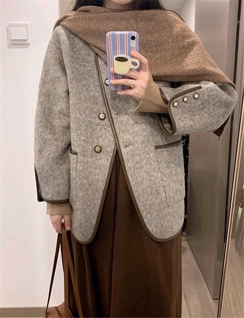 ノーカラーとラウンドネックのシンプルなデザインが、上品でエレガントな印象を与えます。