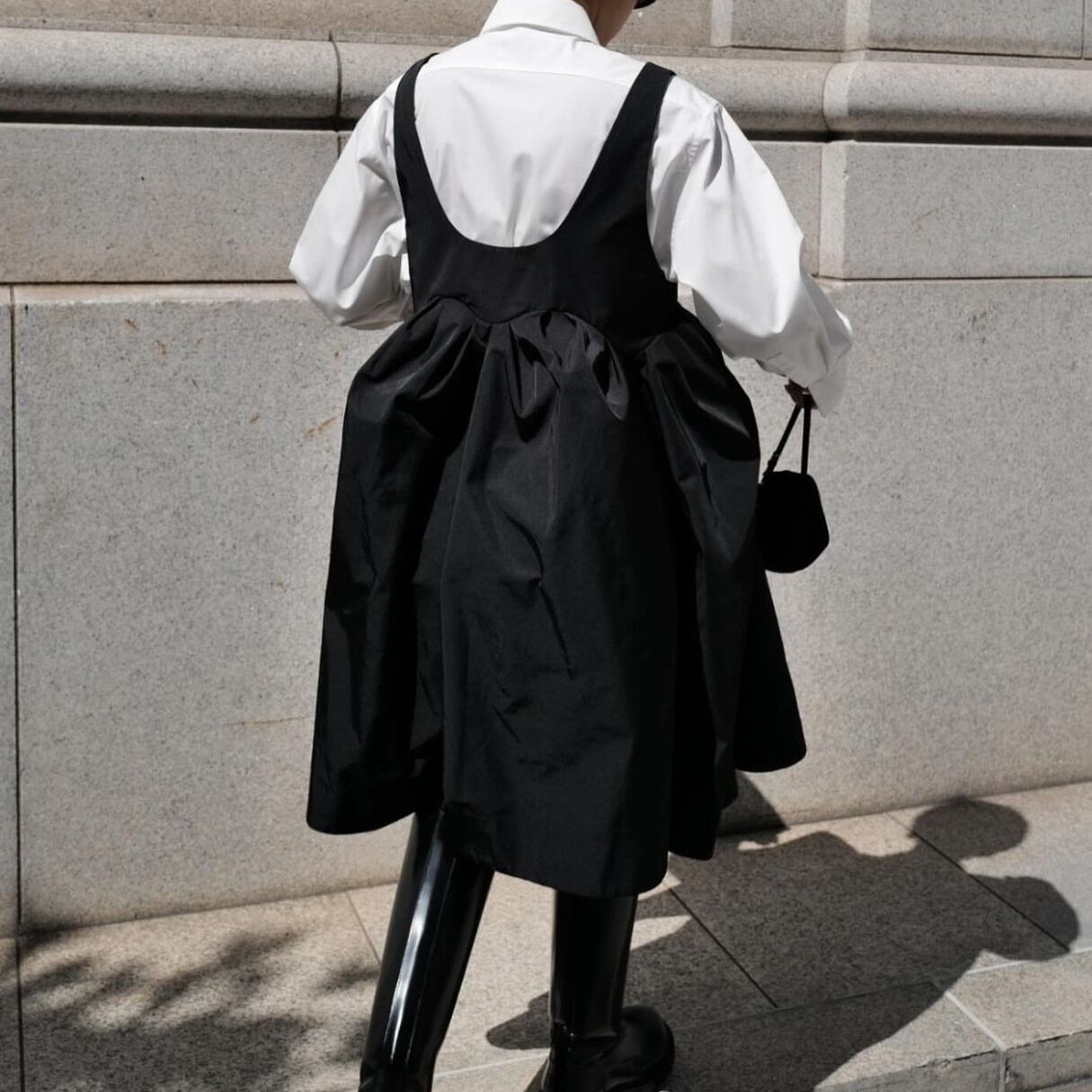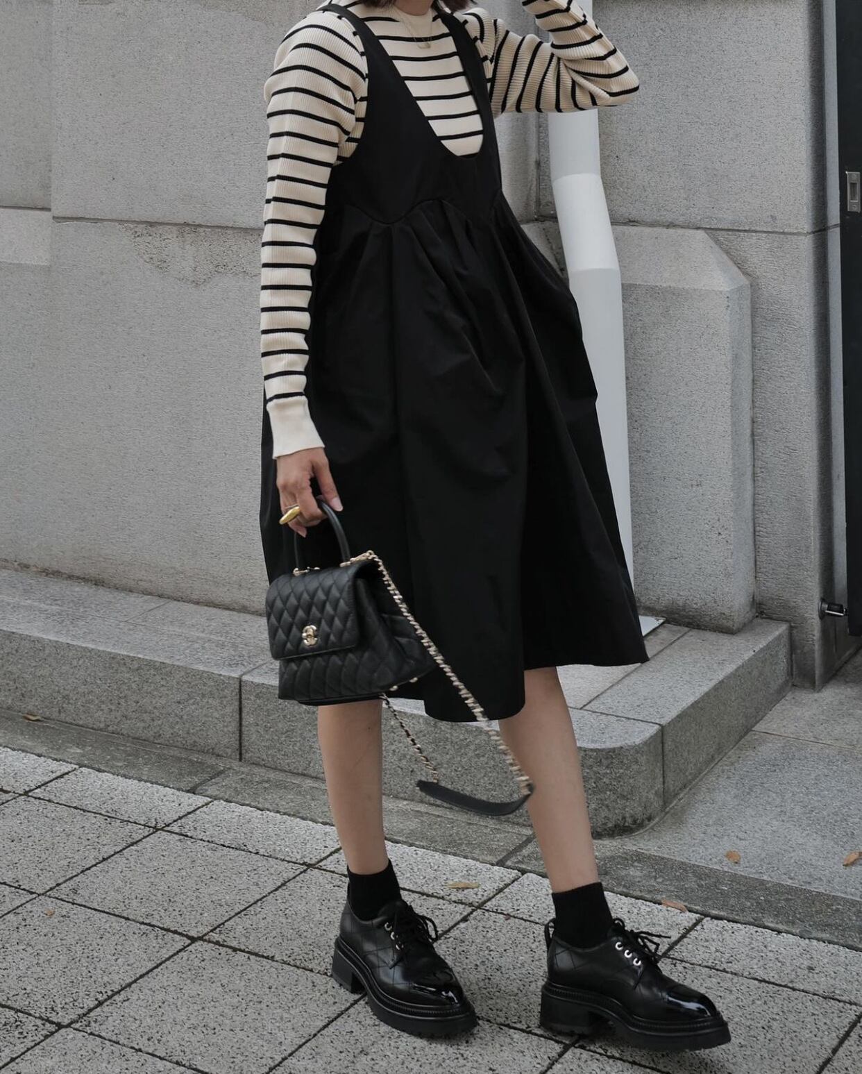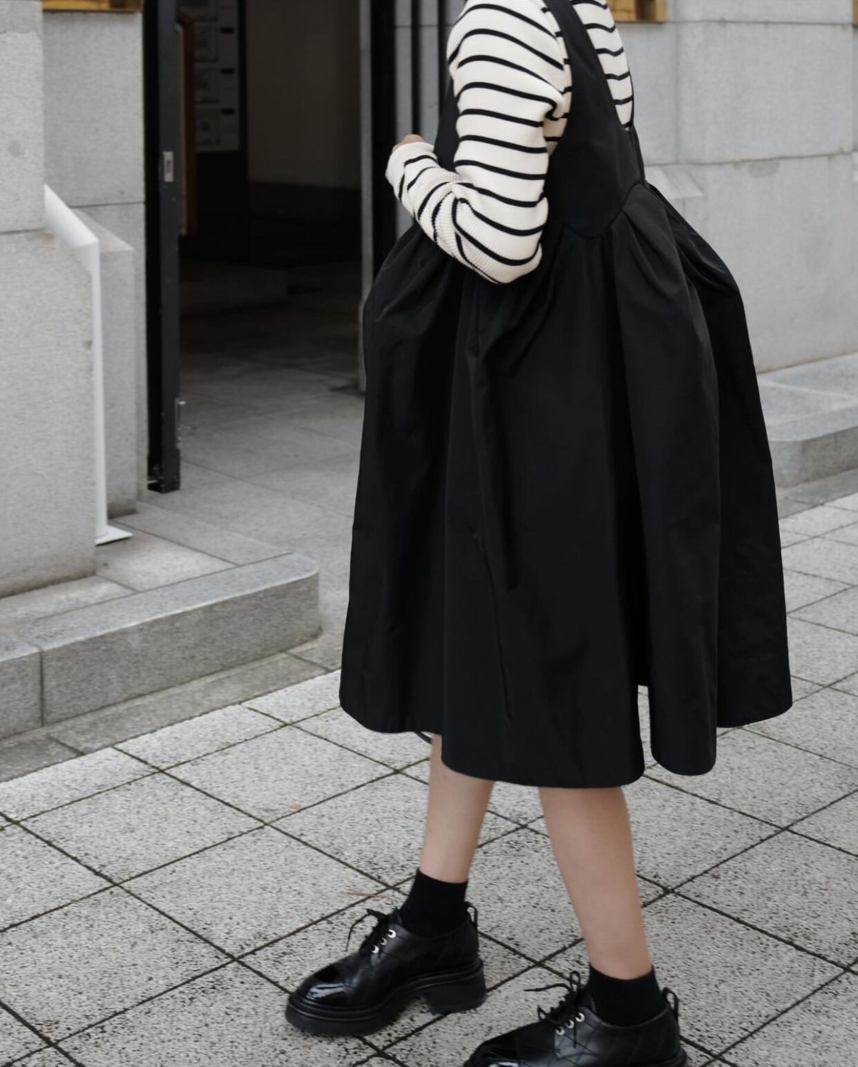 大人可愛い雰囲気を醸し出す「ミニジャンパースカート」は、フレアスカートとの切り替えデザインがポイントです。