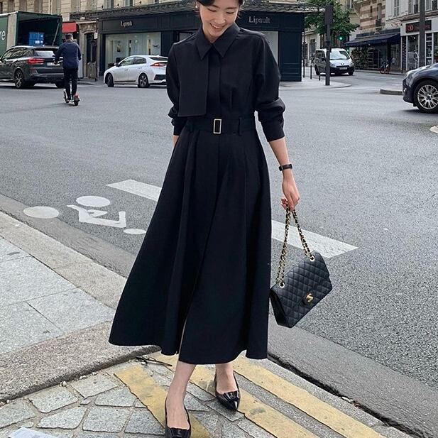 ワンピース ロングワンピース 長袖 襟付き 前開き ボタン ポケット ウエストベルト ロング丈 かわいい 大人可愛い きれいめ シンプル 上品 おしゃれ レトロ かっこいい カジュアル こなれ感 個性的 主役級 存在感 抜け感 春 秋 ベーシック ナチュラル クール エレガント 無地 女性用 レディース ママ OL 通勤 オフィス 学生 通学 デート お出かけ お泊まり 女子会 旅行 休日 カフェ ショッピング コンパ 普段使い デイリー イベント 着回し 重ね着 脚長 ワンサイズ トレンド モテ