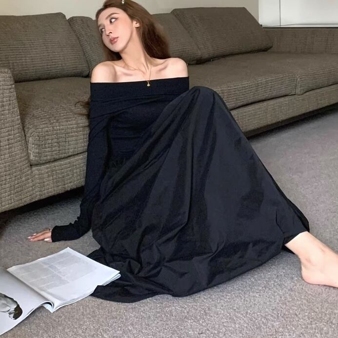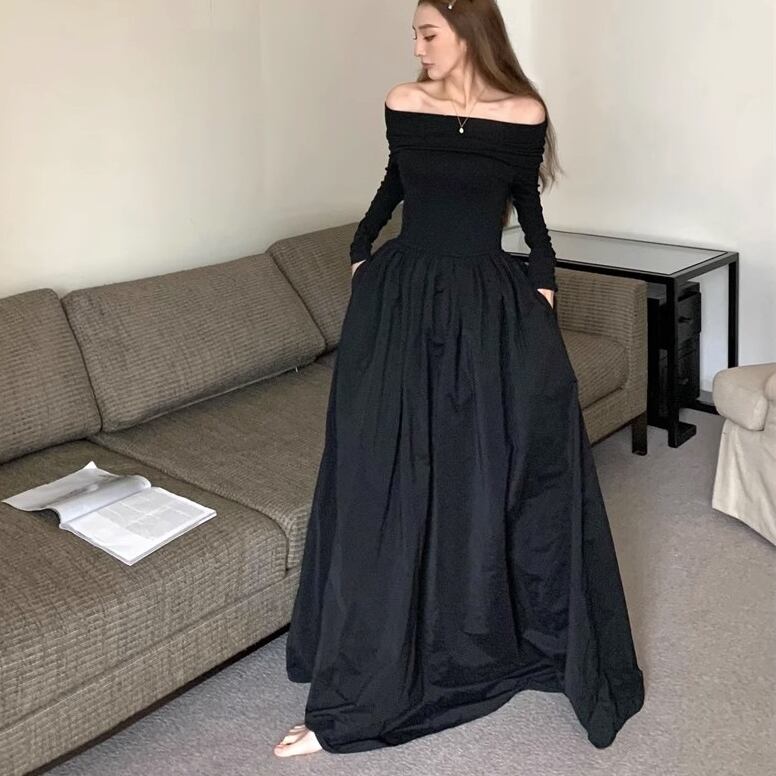 ワンピース ロングワンピース 長袖 オフショルダー オフショル フレアスカート 切り替えデザイン かわいい 大人可愛い きれいめ シンプル 上品 おしゃれ レトロ かっこいい カジュアル こなれ感 個性的 主役級 存在感 抜け感 ベーシック ナチュラル キュート エレガント ゴージャス 無地 女性用 レディース ママ デート お出かけ お泊まり 女子会 旅行 休日 カフェ ショッピング コンパ パーティー 二次会 ディナー 普段使い デイリー イベント 着回し 重ね着 脚長 S M L XL トレンド