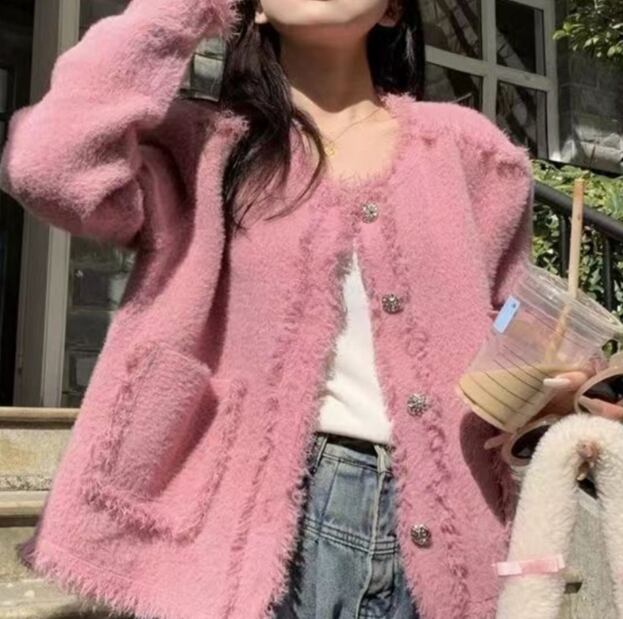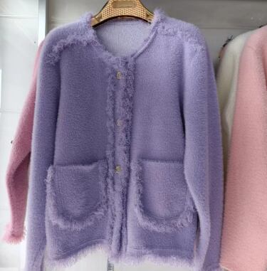 レディース カーディガン アウター クルーネック Aライン もこもこ ふわふわ ポケット ボタン イミテーションミンク アクリル かわいい 大人可愛い きれいめ シンプル 上品 プリンセス 都会的 無地 秋 冬 誕生日 発表会 ハロウィン クリスマス バレンタイン オフィス デート お出かけ お泊まり パーティー 旅行 レストラン 公園 女子会 休日 ホテル コンサート 合コン カフェ 婚活 フリーサイズ 紫 オフホワイト ピンク 水色