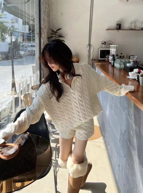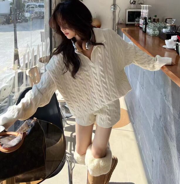 レディース トップス ボトムス ショートパンツ ツーピーストップス ミニ ショート 長袖 襟付き 角襟 ポリエステル カシミヤ スパンデックス かわいい 大人可愛い シンプル カジュアル ラフ ガーリー 学生風 ナチュラル 無地 春 秋 ハロウィン クリスマス バレンタイン デート お出かけ お泊まり 女子会 休日 お花見 お揃い 韓国 オルチャン 楽ちん 体型カバー 定番 フリーサイズ 白 黒 グレー