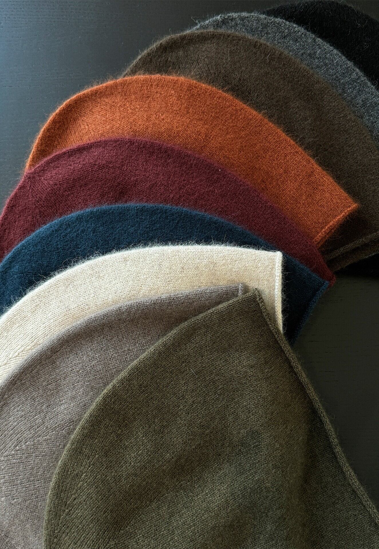 色展開 ブラック ダークグレー ブルー ブラウン オレンジ キャラメル オートミール レッド モスグリーン