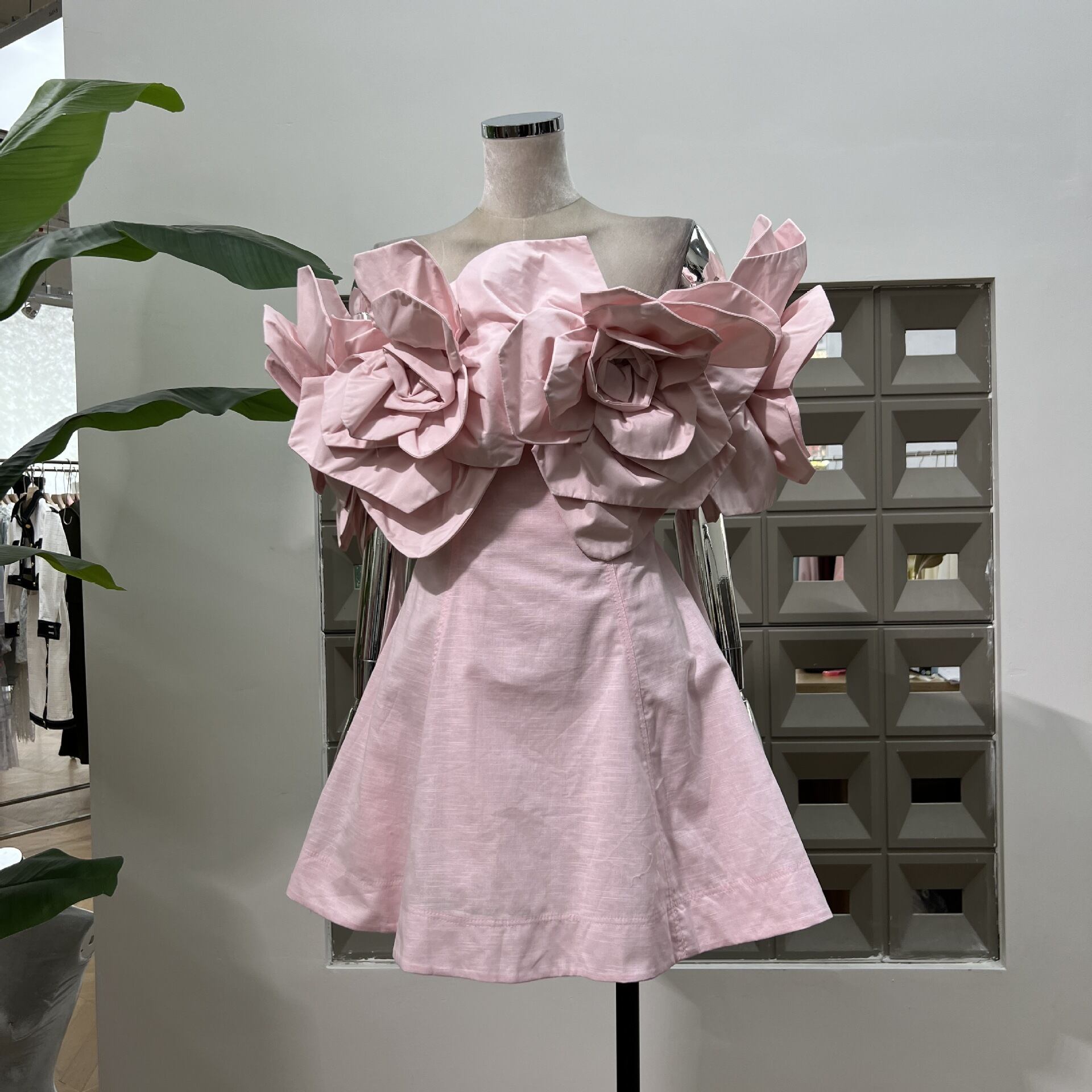 ドレス ウェディング パーティー 結婚式 二次会 披露宴 演奏会 発表会 ステージ 舞台 フォーマル キャバ 衣装 コスチューム 謝恩会 演劇 ラウンジ クラブ ショート 袖なし ノースリーブ オフショルダー Uネック フレア Aライン 3Dフラワー コットン 可愛い きれいめ シンプル 上品 おしゃれ アジアン エキゾチック キュート モード エレガント 主役級 存在感 フォーマル クラシック 清楚 ゴージャス セクシー 華やか ナチュラル フラワー イベント 高見え 光沢感 春 夏 S M L ピンク