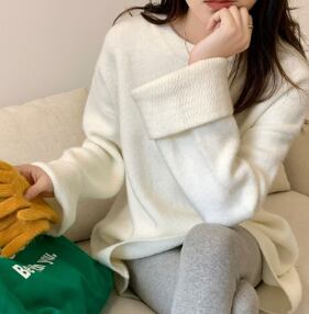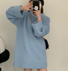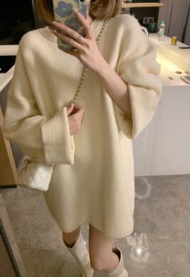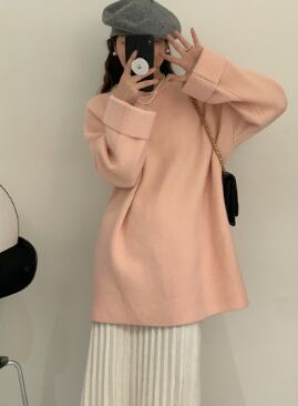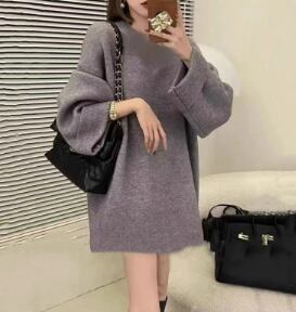 ふんわりとしたニット素材が心地よい、オーバーサイズのレディースワンピースです。