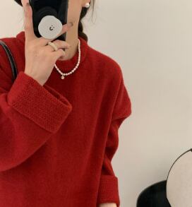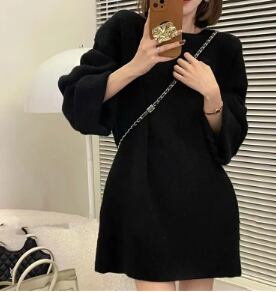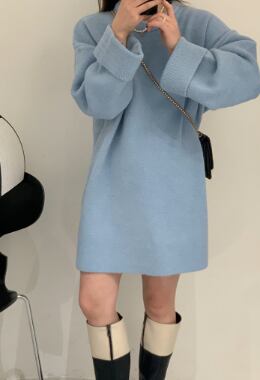 このニットワンピースは、シンプルなデザインながらもこなれ感を演出し、大人可愛いルックを楽しむことができます。