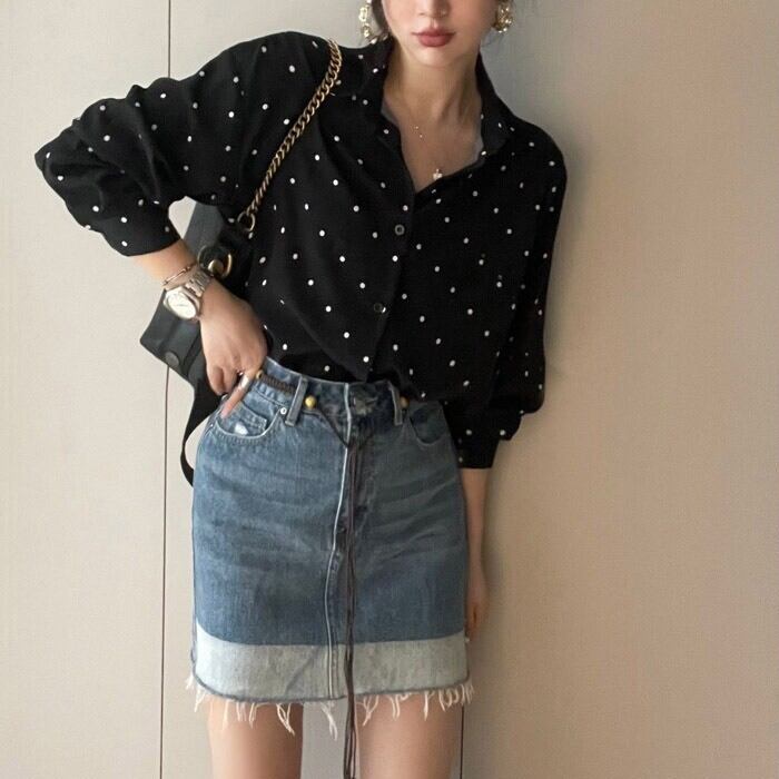 レディース トップス シャツ 長袖 襟付き ボタン 大人可愛い きれいめ おしゃれ かっこいい ラフ ガーリー クール 都会的 ナチュラル ドット柄 春 秋 通勤 デート お出かけ お泊まり イベント リゾート 旅行 海 レストラン 公園 女子会 休日 ホテル ショッピング コンサート ライブ カフェ 韓国 コーデ 楽ちん プレゼント 普段使い 着回し モテ インスタ映え S M L XL 大きいサイズ ブラック
