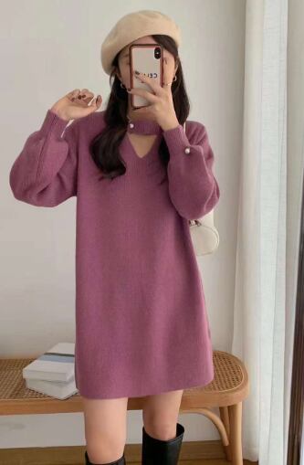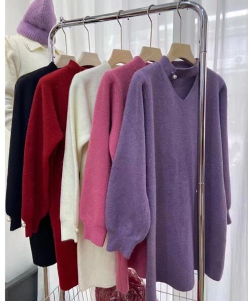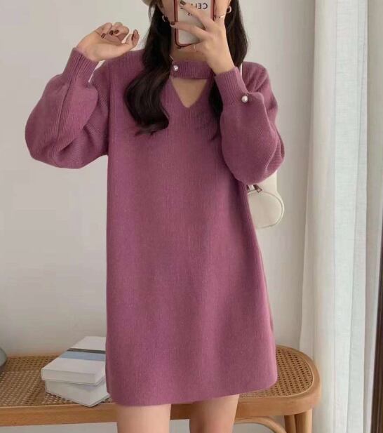 レディース ワンピース ニットワンピ ミニ 長袖 ボリューム袖 ランタンスリーブ アクリル かわいい 大人可愛い シンプル ガーリー ラブリー 無地 秋 冬 誕生日 発表会 ハロウィン クリスマス バレンタイン デート お出かけ お泊まり パーティー イベント 旅行 レストラン 女子会 休日 ホテル カフェ 婚活 韓国 オルチャン 楽ちん 暖かい 脚長 普段使い モテ 清楚 定番 フリーサイズ 白 黒 紫 ピンク 赤