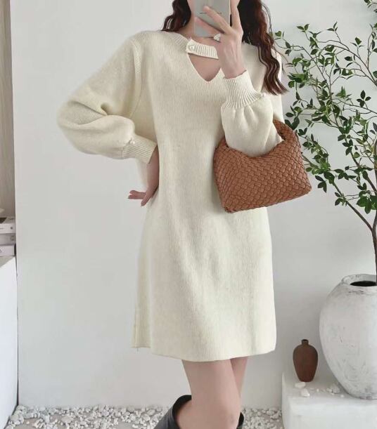 女性らしさを引き立てるレディースニットワンピースです。