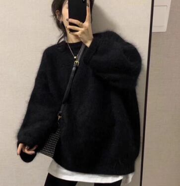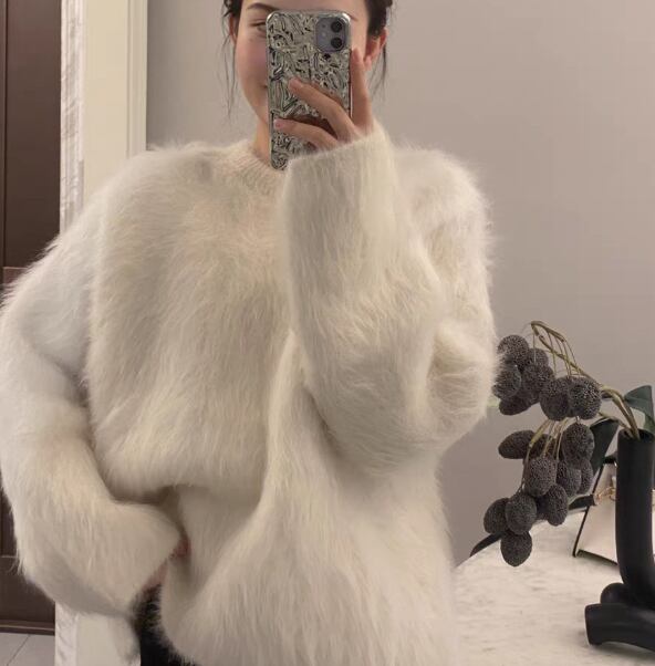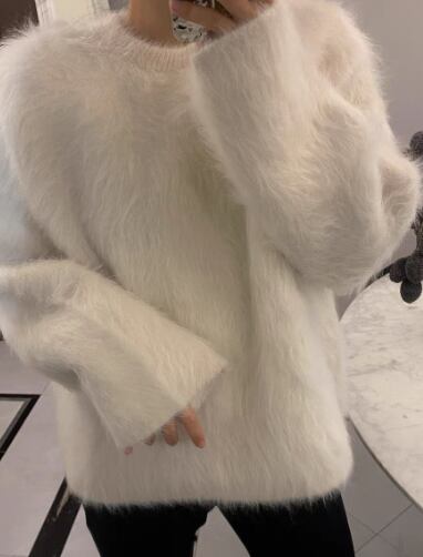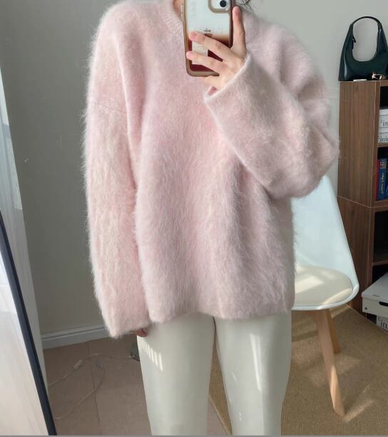 レディース トップス ニット 長袖 クルーネック ワイド オーバーサイズ ポリエステル アクリル 模造ミンクベルベット かわいい 大人可愛い シンプル 上品 おしゃれ ラフ ガーリー ルーズ 無地 秋 冬 誕生日 クリスマス バレンタイン マタニティ デート お出かけ お泊まり レストラン 公園 女子会 休日 ホテル カフェ お揃い 双子 韓国 楽ちん 暖かい 普段使い 着回し モテ 清楚 定番 S M L XL 白 黒 グレー ピンク