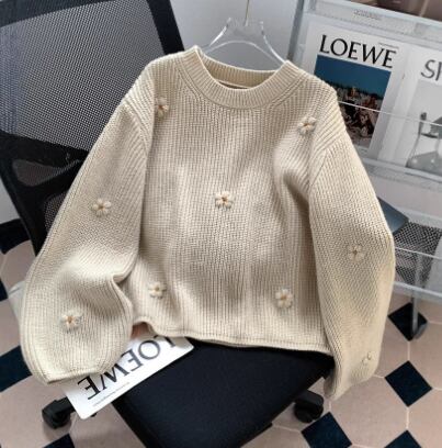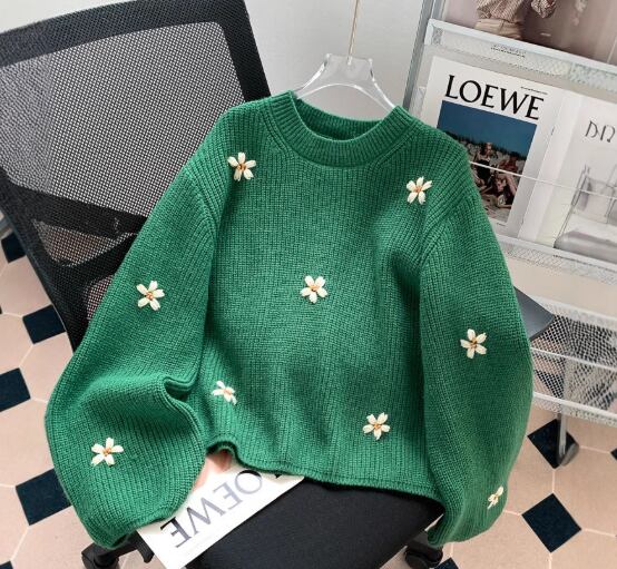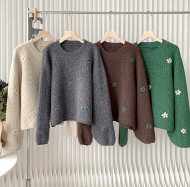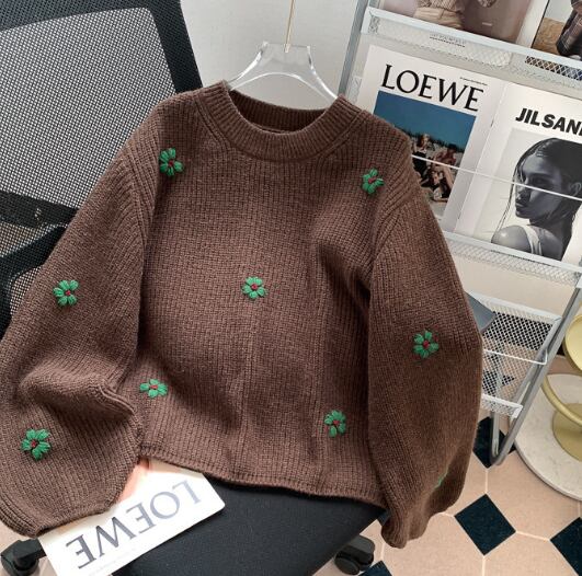 レディース トップス プルオーバー 長袖 ボリューム袖 クルーネック ワイド 刺繍 厚手 かわいい シンプル カジュアル 上品 レトロ こなれ感 ラフ 個性的 キュート 学生風 無地 花柄 秋 冬 誕生日 ハロウィン クリスマス バレンタイン ペア 学生 デート お出かけ お泊まり 公園 女子会 休日 ショッピング カフェ お揃い 双子 韓国 暖かい 普段使い フリーサイズ 茶色 グレー オフホワイト 緑