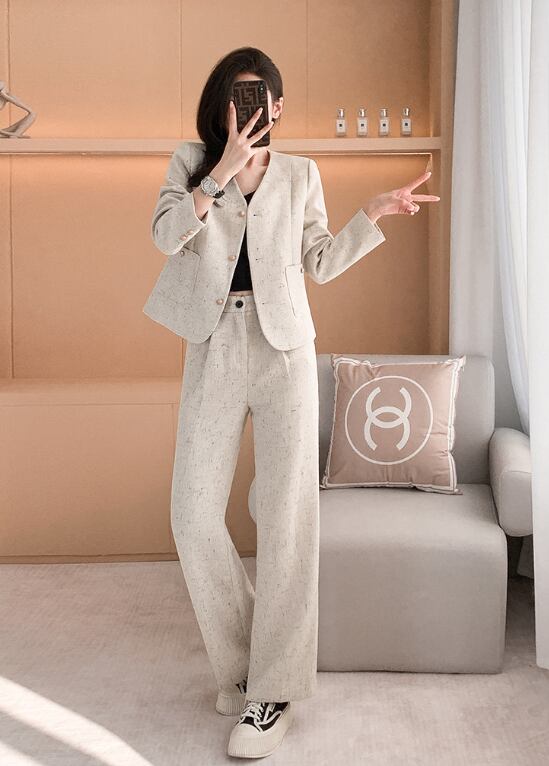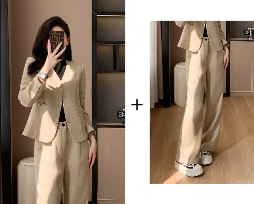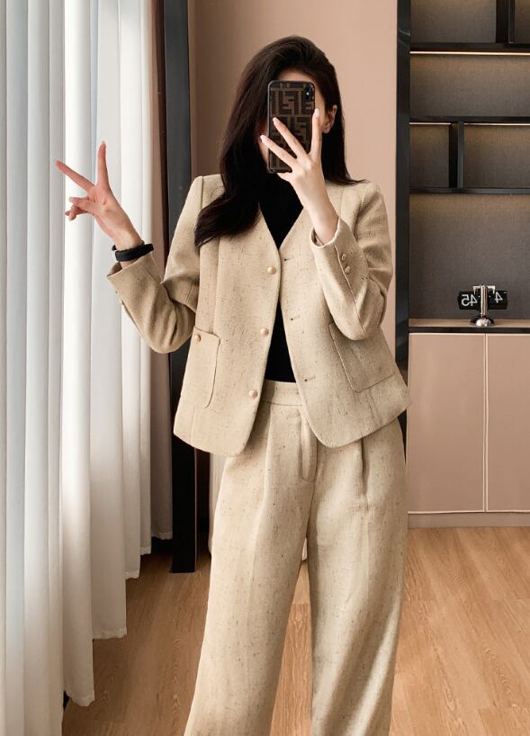 大人シンプルでおしゃれな「ノーカラージャケット&ワイドパンツ」の登場です!スタイリッシュなデザインと機能性が融合したこのセットは、秋冬のコーディネートに最適。オフィスやビジネスシーン、通勤にぴったりのアイテムです。
