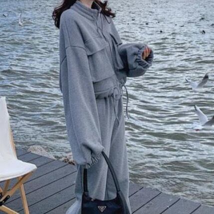 レディース トップス パンツ ボトムス ルームウェア パーカー スウェット 部屋着 セットアップ 前開き スウェットパンツ ショート アンクル丈 長袖 ゴム袖 襟付き スタンドカラー ストリート ポケット ドロスト 伸縮性 ギャザー シンプル カジュアル おしゃれ かっこいい ラフ スポーティー ルーズ 個性的 主役級 存在感 抜け感 都会的 アクティブ 無地 春 秋 10代 20代 学生 お出かけ アウトドア 旅行 公園 休日 ショッピング 韓国 コーデ 着回し S M L XL 黒 ブラック グレー
