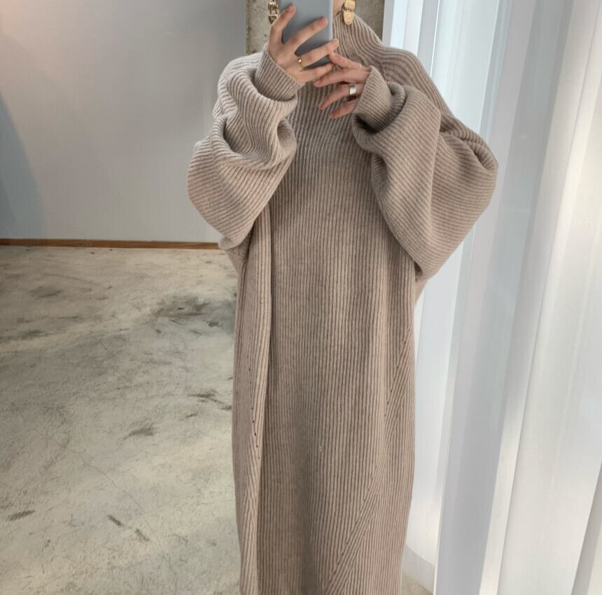 レディース スカート ワンピース ニット セーター プルオーバー ニットワンピ ニットスカート ロングスカート ミモレ ロング 長袖 ボリューム袖 ラグラン ハイネック タートルネック ストレート リブ リブニット 大人可愛い シンプル カジュアル おしゃれ こなれ感 ラフ ルーズ 抜け感 クラシカル 無地 秋 冬 10代 20代 30代 40代 お出かけ 休日 ショッピング 韓国 コーデ 楽ちん 暖かい 体型カバー 普段使い モテ 定番 ゆったり ゆる フリーサイズ 茶色 ブラウン グレー アプリコット