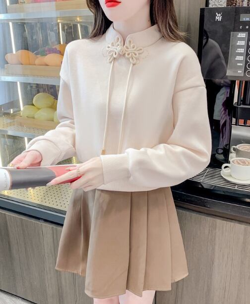 中国結びボタンがあしらわれており、大人可愛いデザインが魅力のこのアイテムは、コットン素材で優しい肌触りながらも暖かさをしっかり保ってくれます。