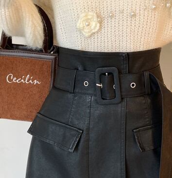 レディース スカート ミニ スリム Aライン ポケット ハイウエスト ベルト付き ポリエステル PUレザー かわいい 大人可愛い シンプル 上品 おしゃれ ガーリー モード系 無地 春 秋 冬 ロングシーズン ハロウィン クリスマス バレンタイン 学生 デート お出かけ お泊まり レストラン 女子会 休日 ショッピング 合コン コンパ カフェ 韓国 オルチャン 美脚 脚長 普段使い モテ 清楚 定番 S M L XL 黒 コーヒー