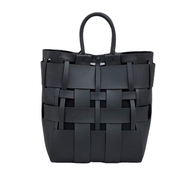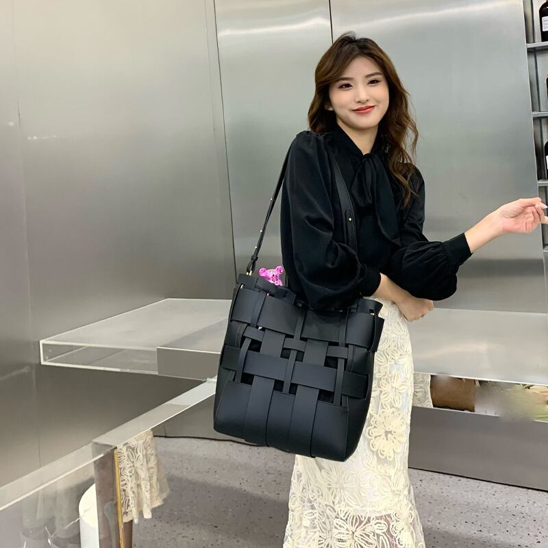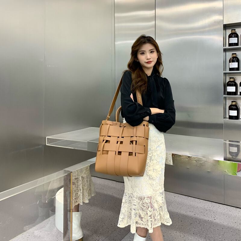 バッグ レディース ショルダー ハンドバッグ トート 大容量 スクエア 織りバケツ 革 ポリエステル かわいい シンプル お洒落 レトロ 存在感 無地 オフィス ビジネス OL 通勤 イベント 旅行 お買い物 女子会 休日 普段使い シーズンレス 大きめ 黒 キャラメル 金棕色
