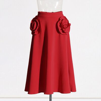 レディース スカート フレアスカート ミモレ丈 膝丈 ミディ丈 ワイド ウエストマーク Aライン 立体花モチーフ 膝下丈 上品 大人可愛い お呼ばれ 結婚式 二次会 パーティー 発表会 食事会 記念日 デート オフィス OL ミセス きれいめ 春 夏 秋 冬 オールシーズン 30代 40代 50代 通勤 通学 入学式 卒業式 演奏会 発表会 同窓会 カジュアル エレガント シンプル 無地 存在感 都会的 冠婚葬祭 オフィス ビジネス 発表会 コンサート ライブ 韓国 S M L レッド 光沢 秋カラー