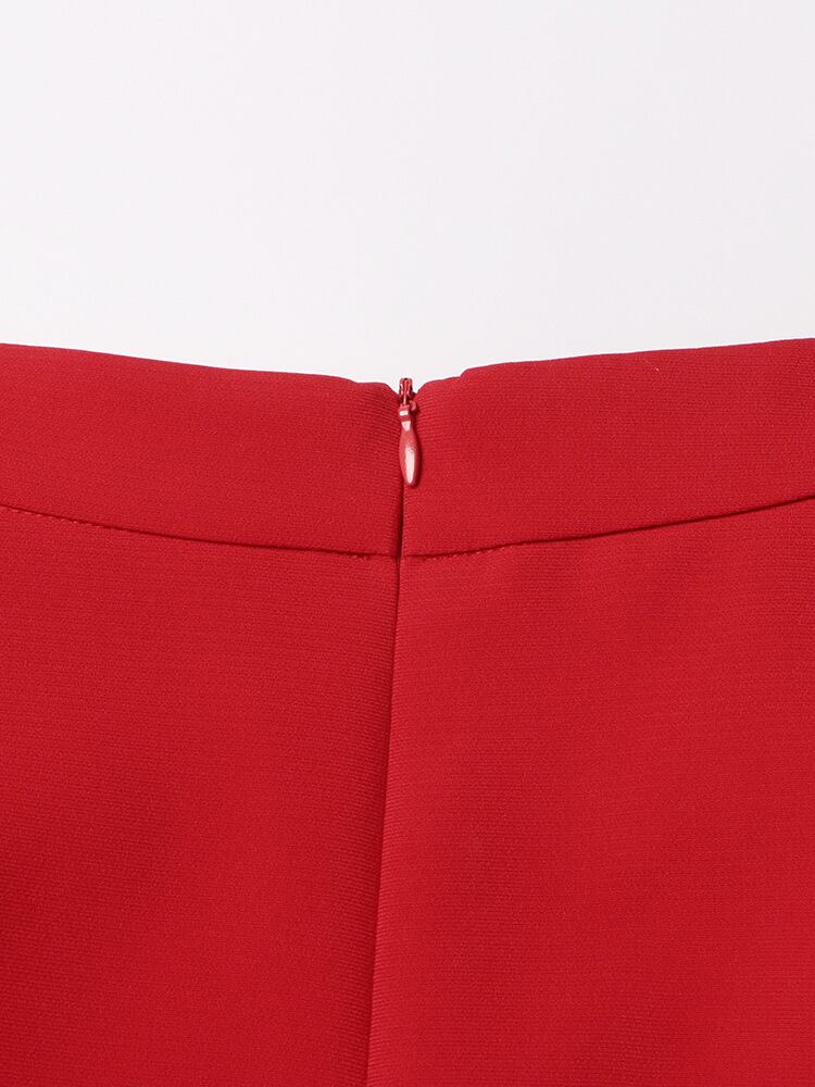 華やかな赤色と立体フラワーモチーフが目を引く大人可愛いスカートです。