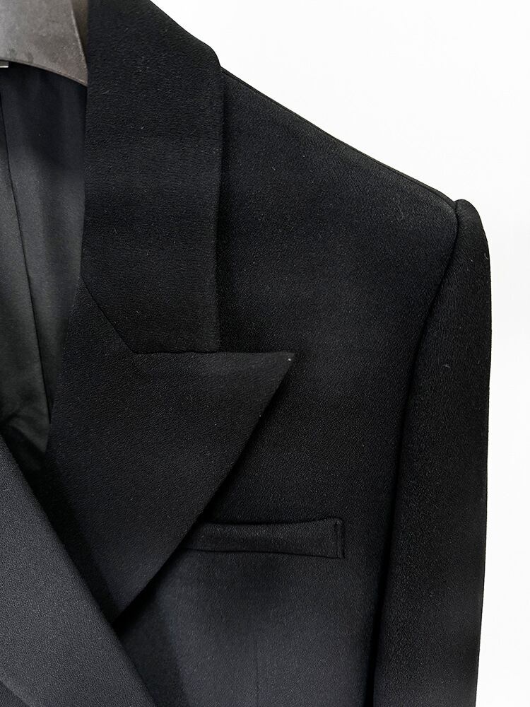 クラシックなダブルボタンとテーラードカラーで、シーンを選ばず上品に着こなせます。
