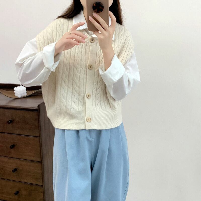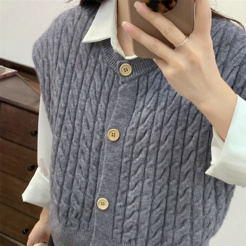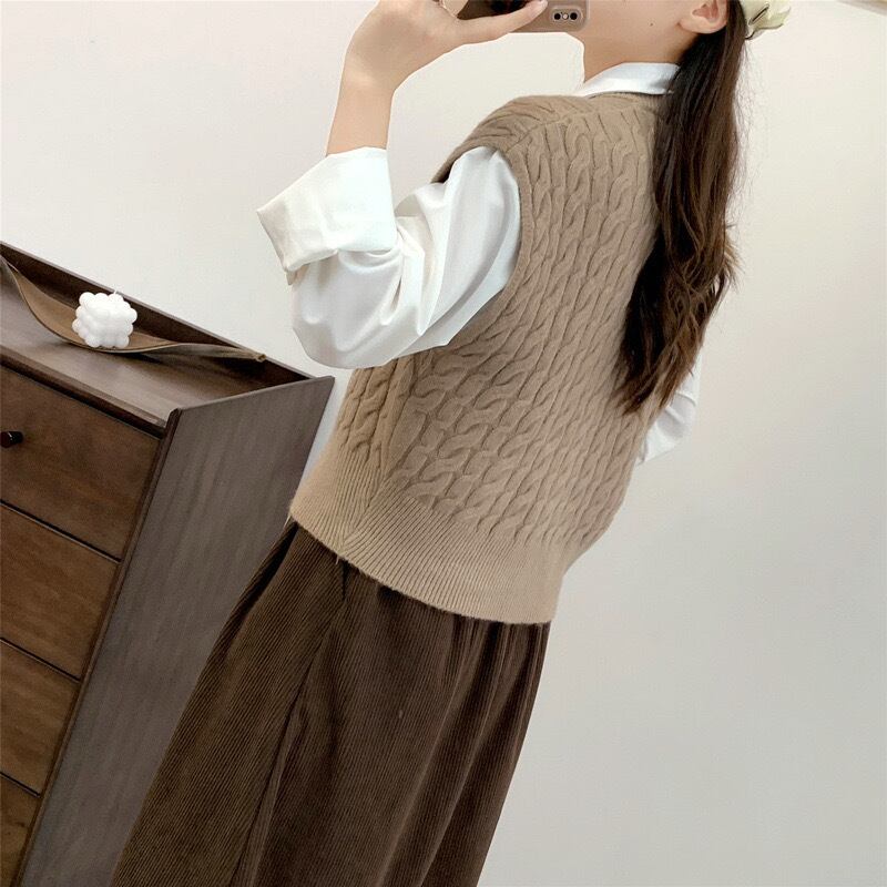 韓国レトロな雰囲気がオシャレなケーブルニットベスト。