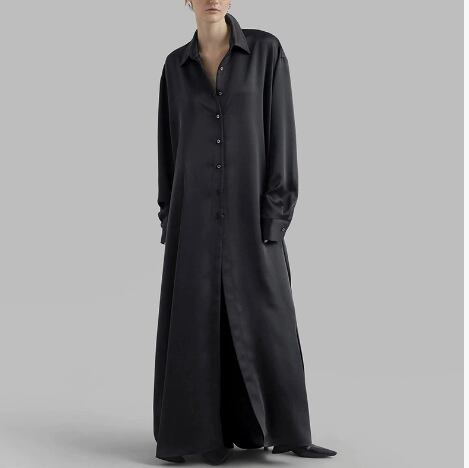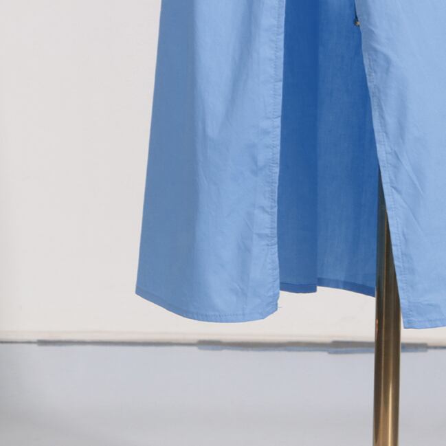 襟付き&サイドスリットがスタイリッシュで、シンプルながら都会的な存在感を放ちます。