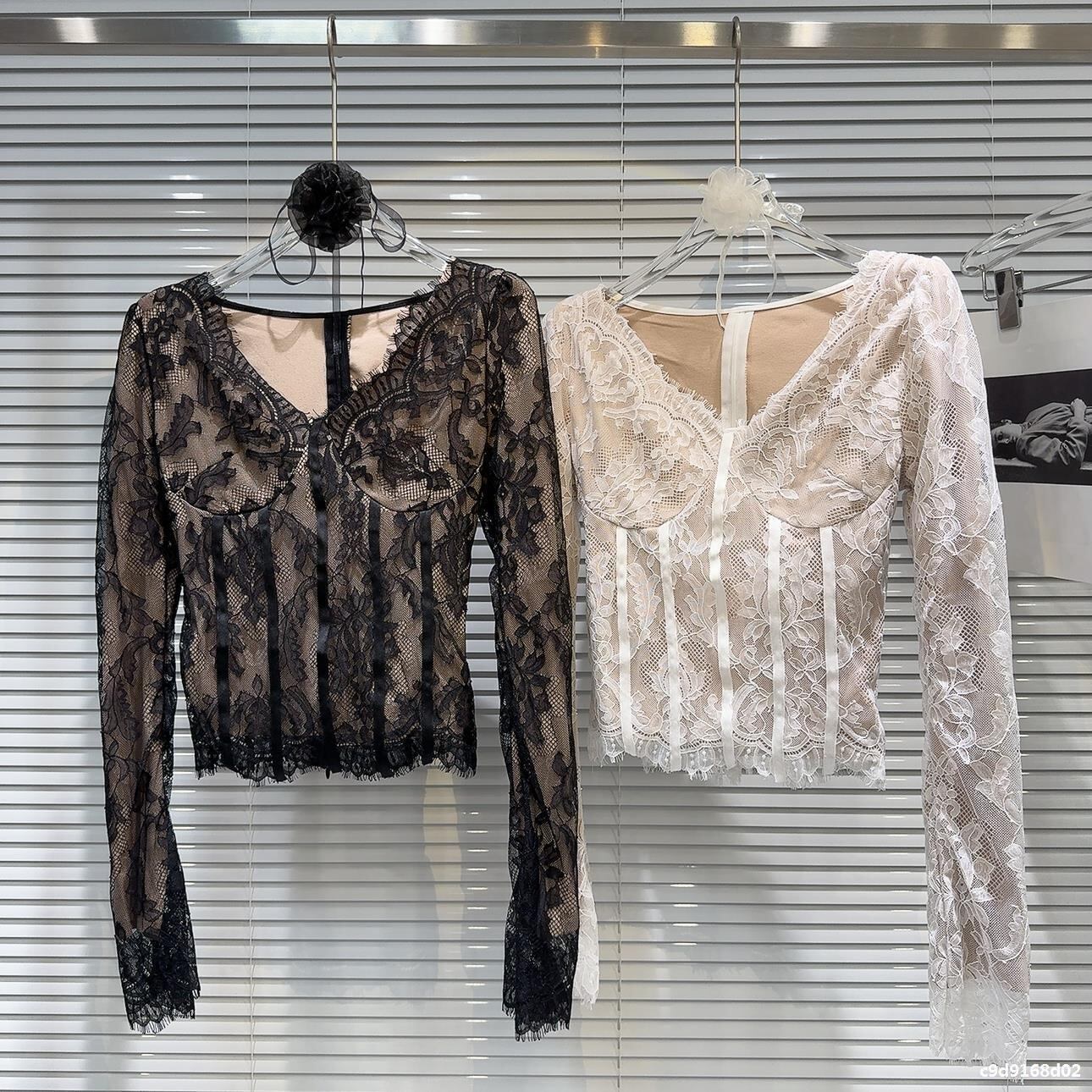 コルセット風 レディース トップス カットソー 長袖 Vネック 襟なし タイト スリム 細身 フェミニン レース 透け感 かわいい 大人可愛い きれいめ 上品 おしゃれ ガーリー 個性的 エレガント 主役級 存在感 ラブリー キュート 総柄 春 秋 ママ 学生 学校 通学 デート お出かけ パーティー イベント 旅行 女子会 休日 ショッピング カフェ モノトーン 普段使い 着回し S M L ホワイト ブラック ベーシックカラー