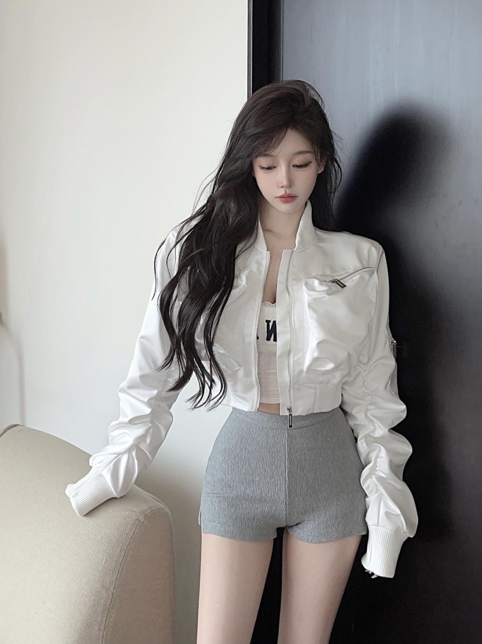 レディース ジャケット ミリタリージャケット 羽織 前開き クロップド丈 長袖 ボリューム袖 襟なし ノーカラー タイト スリム 細身 ストリート ファスナー ポケット かわいい 大人可愛い シンプル カジュアル おしゃれ かっこいい こなれ感 メンズライク ガーリー クール ラブリー キュート ベーシック ナチュラル 無地 春 秋 ママ 通勤 学生 学校 通学 デート お出かけ 旅行 女子会 休日 ショッピング お花見 カフェ モノトーン 普段使い 着回し S M L XL ホワイト ブラック
